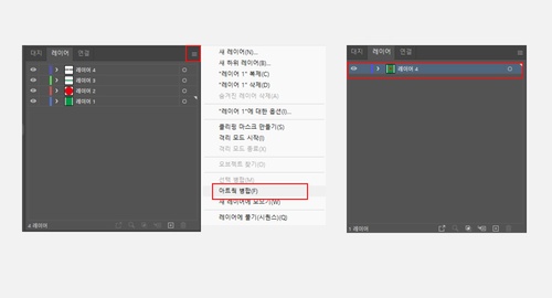 꼭 하나의 레이어로 병합해 주시고 필요치 않은 레이어는 삭제하여 정상적으로 인쇄가 진행되도록 저장 해주시기 바랍니다.