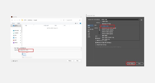 바로 PDF로 저장하는 경우 다른 프로그램에서 테이터 오픈 하거나 출력 시 색상에러가 발생하므로