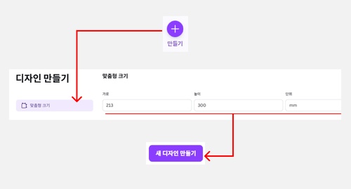 좌측 상단에 [만들기(+)]를 선택하면 [디자인만들기] 창이 열립니다.