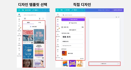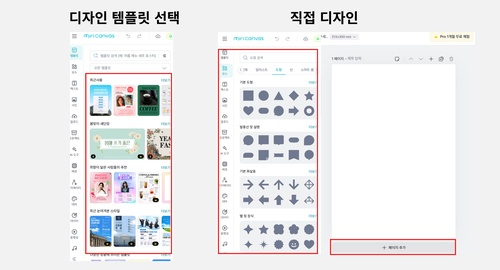 디자인 템플릿 선택 또는 요소를 이용하여 디자인 작업
