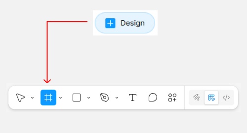 피그마 로그인 후 [Design]을 선택하여 새 디자인창을 연 후에, [프레임]을 선택합니다.