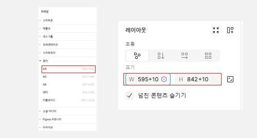 프레임 옵션 에서 [종이] - [원하는 사이즈]를 선택하시면 재단사이즈 기준의 프레임이 만들어집니다.