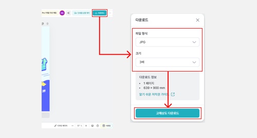 우측 상단 [다운로드]를 선택하고, 파일형식은 [JPG]가 가장 적합합니다.