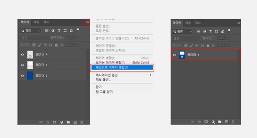 작업시 사용된 레이어들은 작업 완료 후 저장전에 꼭 [배경으로 이미지 병합]을 한 후 저장해주시기 바랍니다.