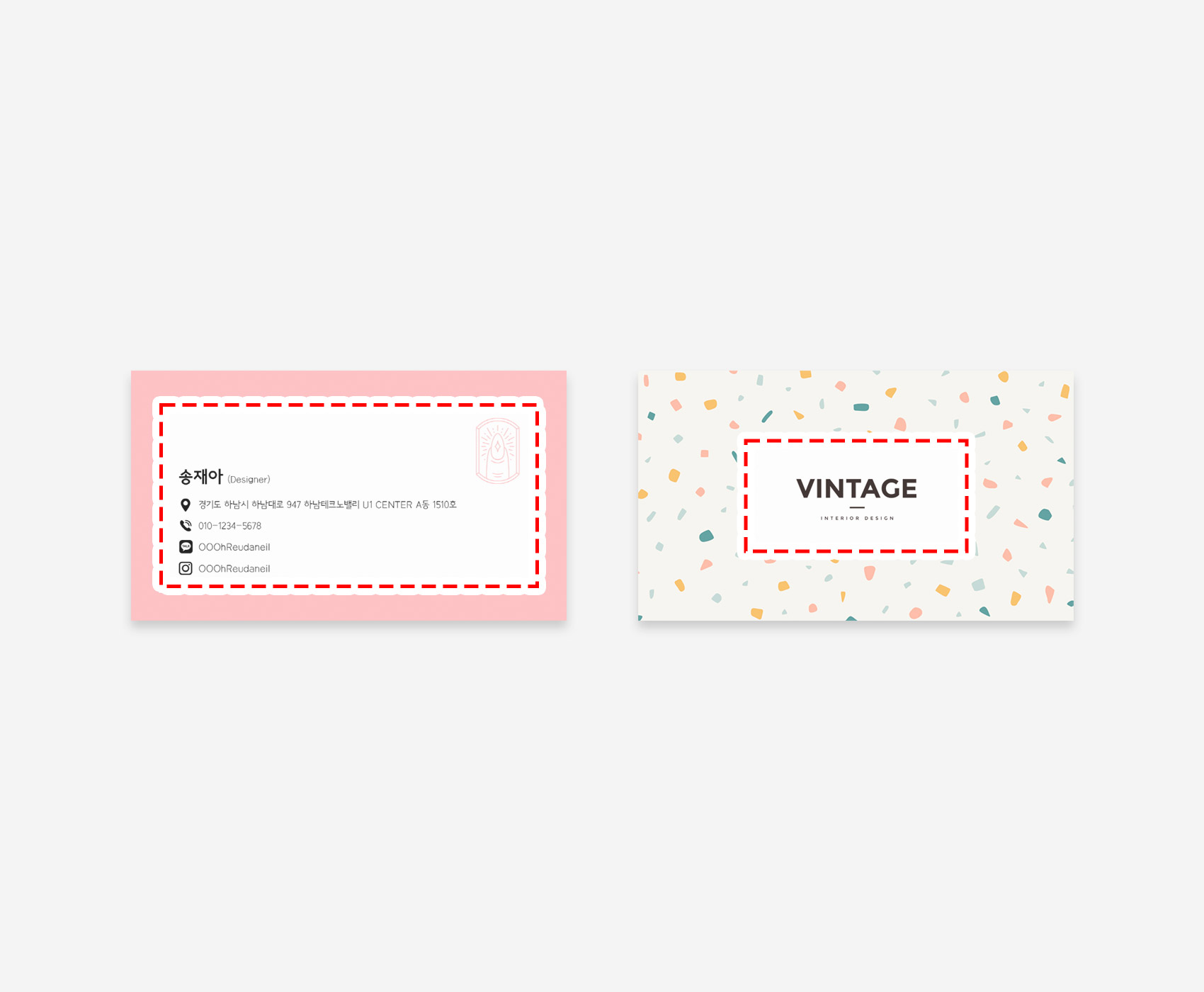 - 파일에 가이드라인, 재단선 등을 삭제 하지 않은 경우 내용이 함께 출력되어 제작됩니다.