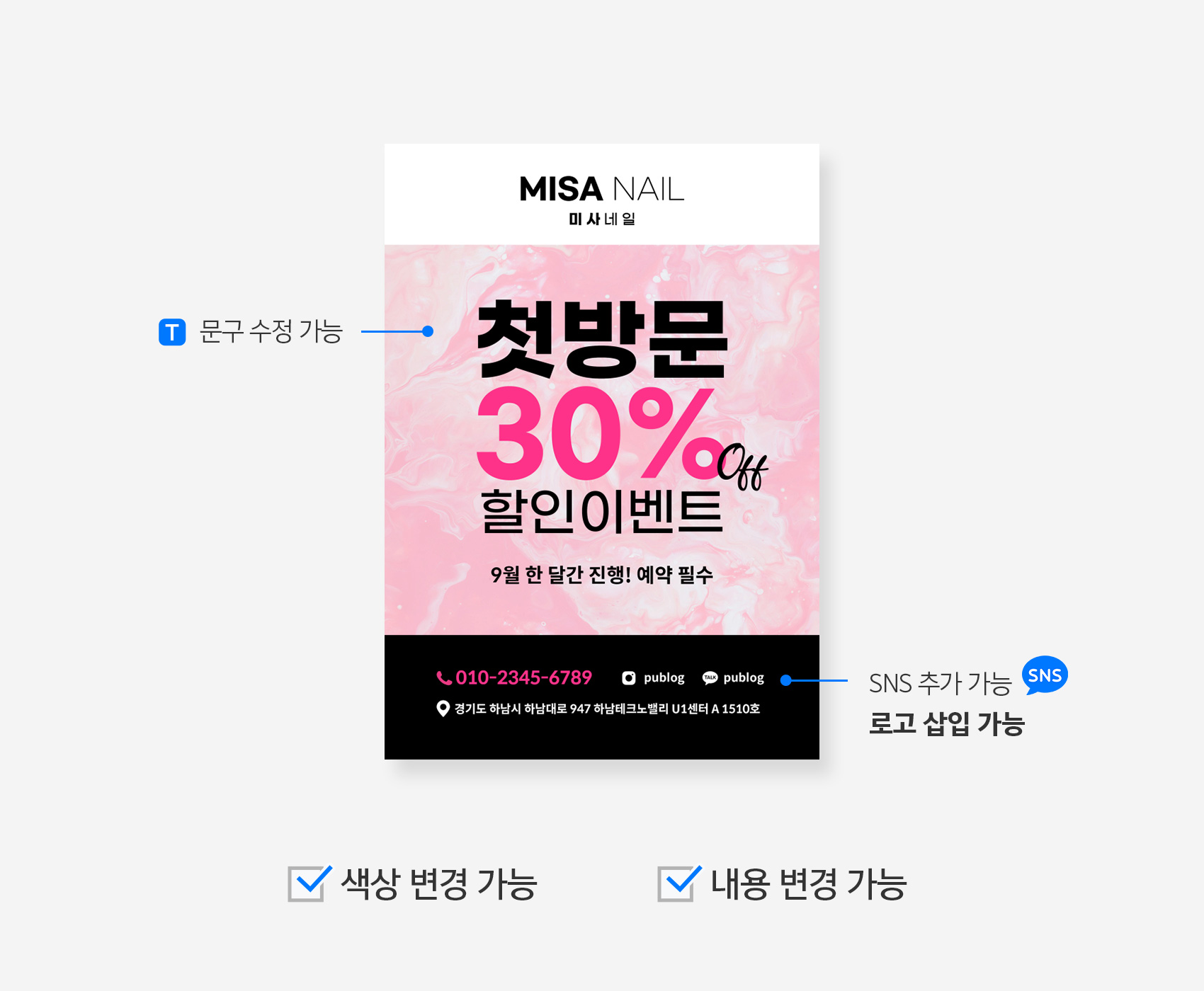 - 일러스트, 인디자인에서 PDF로 저장 시 반드시 서체아웃라인 처리후 작업사이즈로 저장하시기 바랍니다.