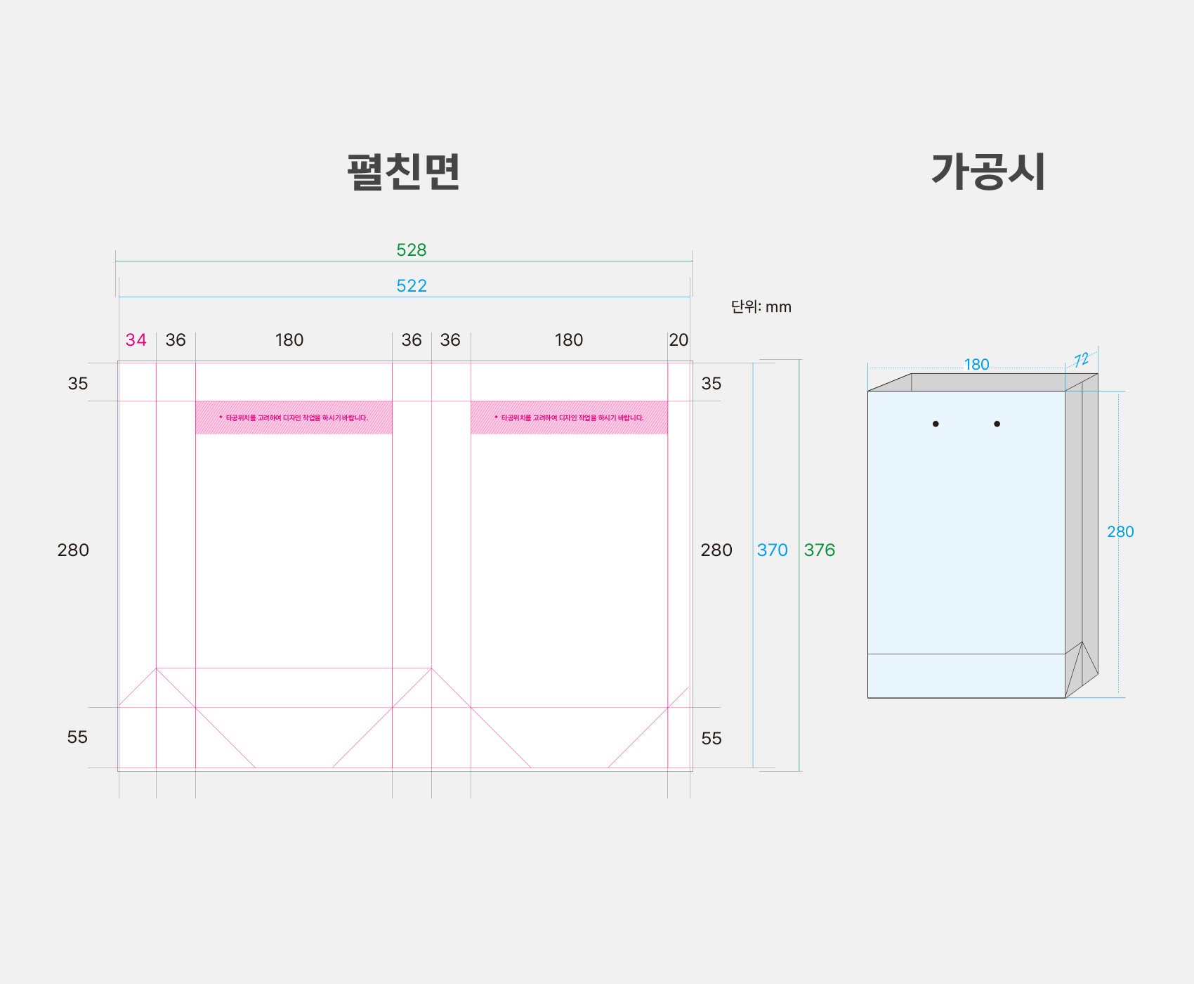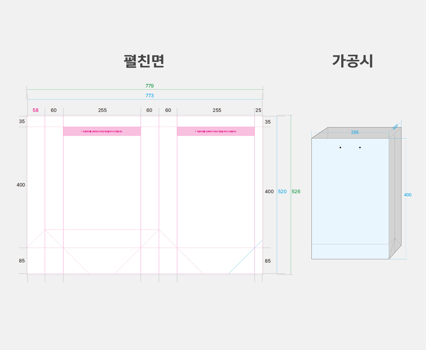 - 일러스트, 인디자인에서 PDF로 저장 시 반드시 서체아웃라인 처리후 작업사이즈로 저장하시기 바랍니다.