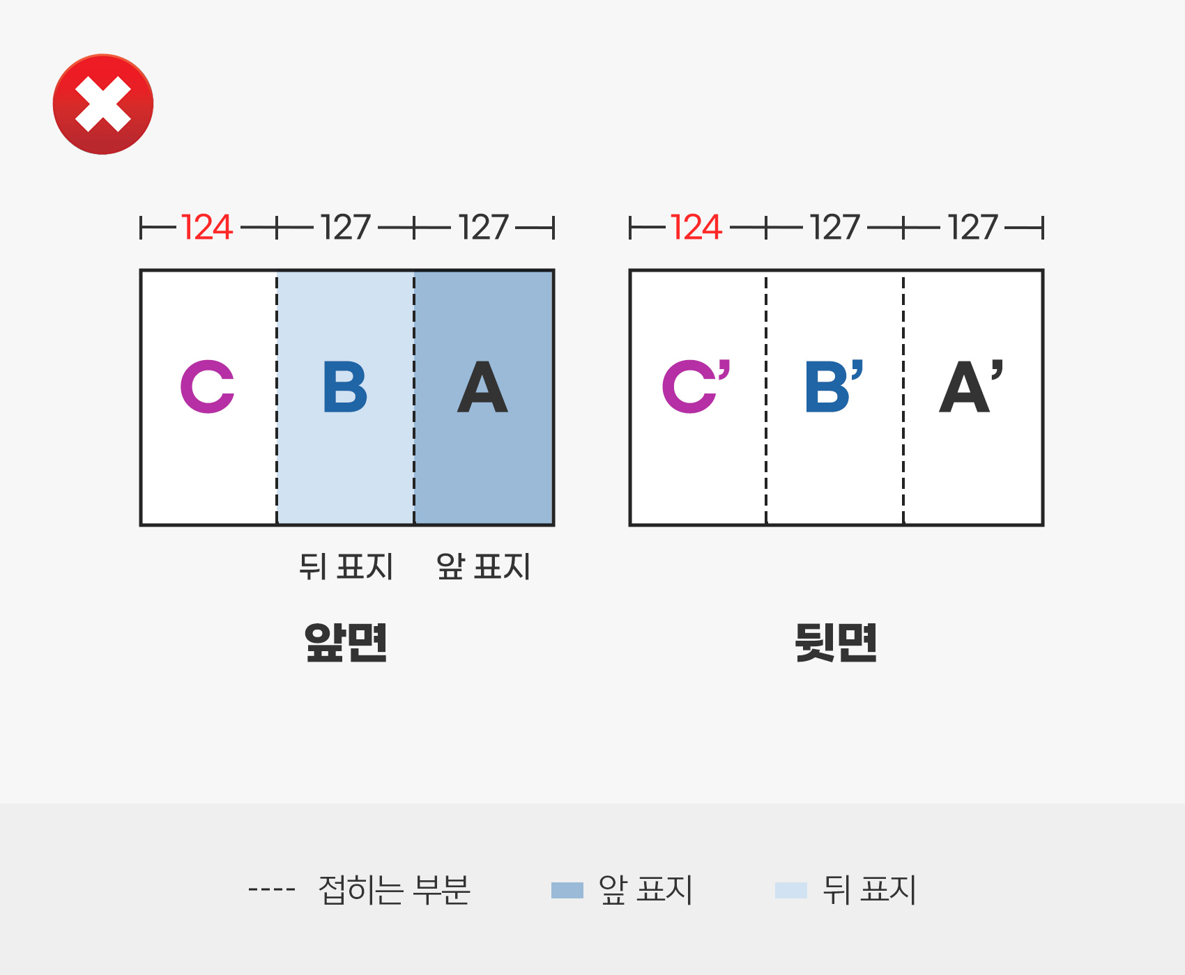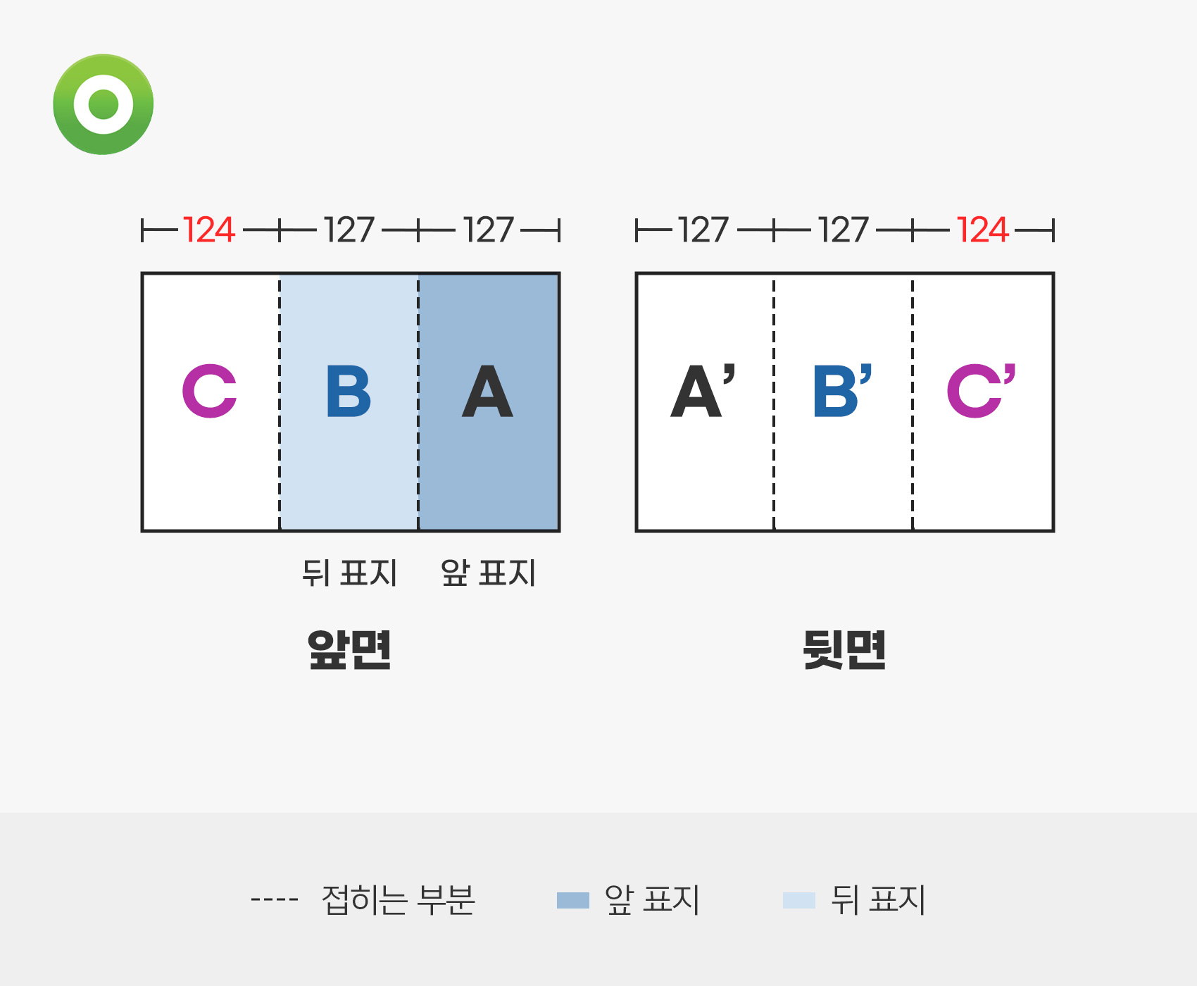 1. 겉면, 안면의 순서 에 따라 접지 시 표지 앞과 표지 뒤를 확인 하시기 바랍니다.