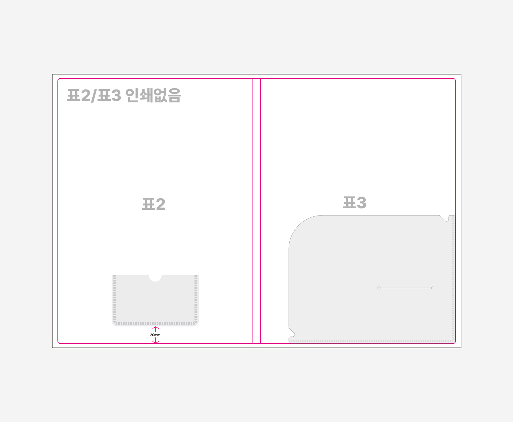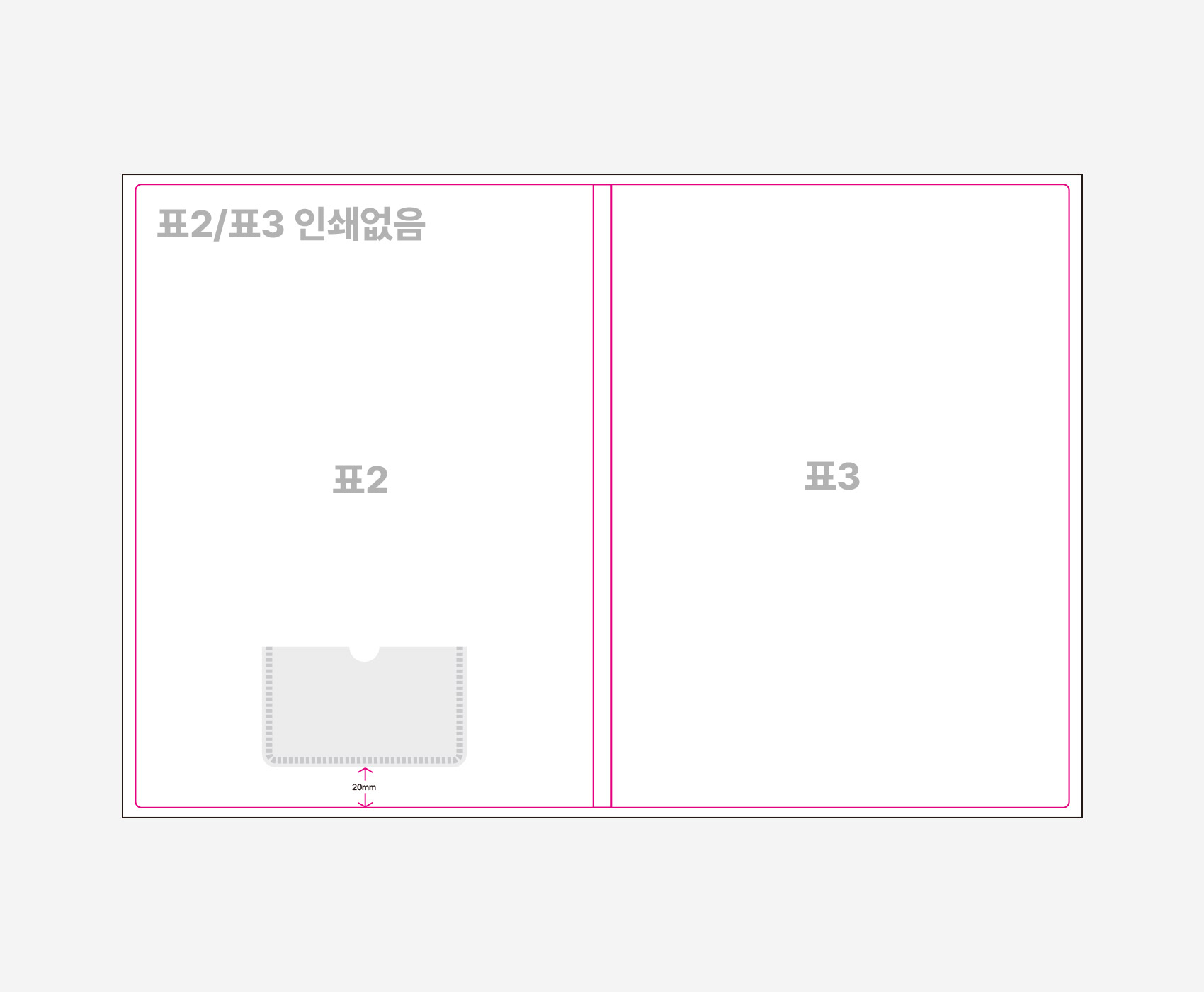 • 명함꽂이의 위치는 표2 기준 하단에서 20mm, 가로 중앙에 부착됩니다.